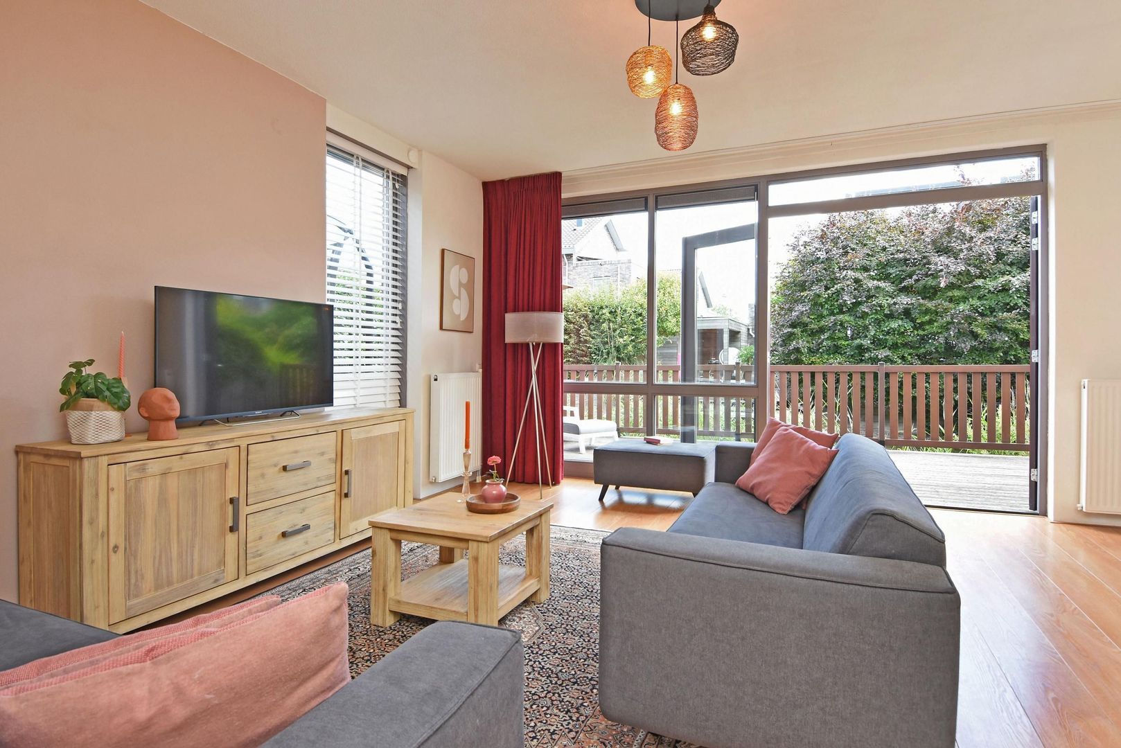 De lichte woonkamer van circa 50 m² beschikt over openslaande deuren naar de zonnige, aan het water gelegen achtertuin (ca. 11,60 x 4,46 m, zuidoost georiënteerd) – een heerlijke plek om de hele dag van de zon te genieten.