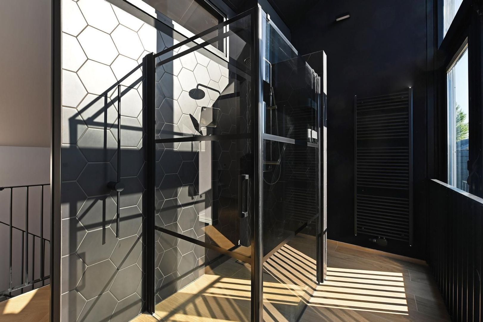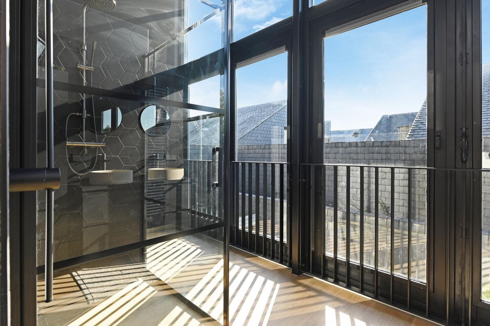 De woning beschikt over vier comfortabele slaapkamers, ideaal voor gezinnen, thuiswerkers of logees. De luxe badkamer is strak en modern afgewerkt met een ruime inloopdouche met regendouche en inbouwdrain, een dubbele wastafel met stijlvol meubel en een handdoekenradiator.