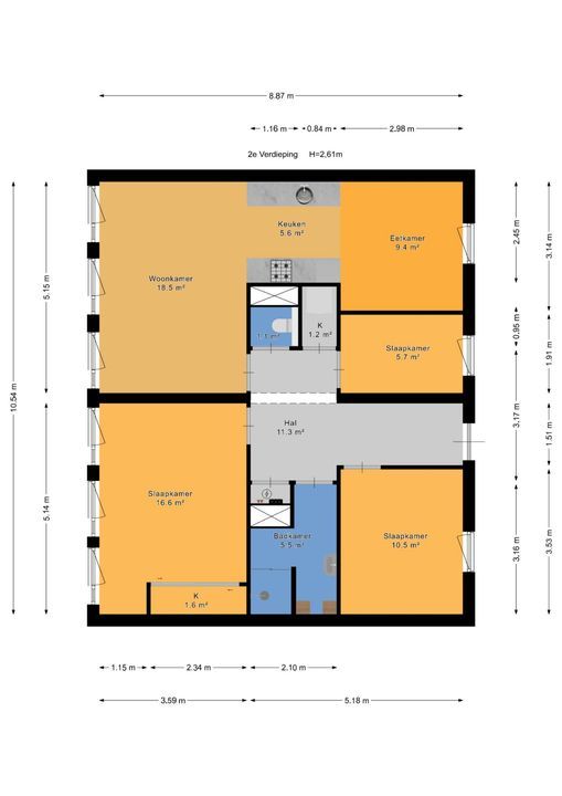 Het appartement beschikt over drie goed bemeten slaapkamers. De huidige indeling biedt daarnaast de mogelijkheid om de eetkamer eenvoudig om te vormen tot een vierde slaapkamer of werkruimte.