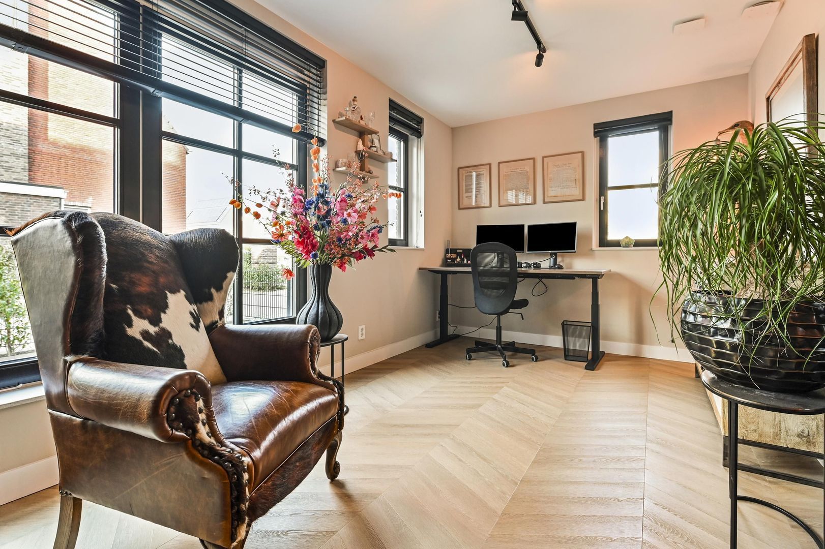 - een luxe thuiswerkplek met volop daglicht en werkruimte
