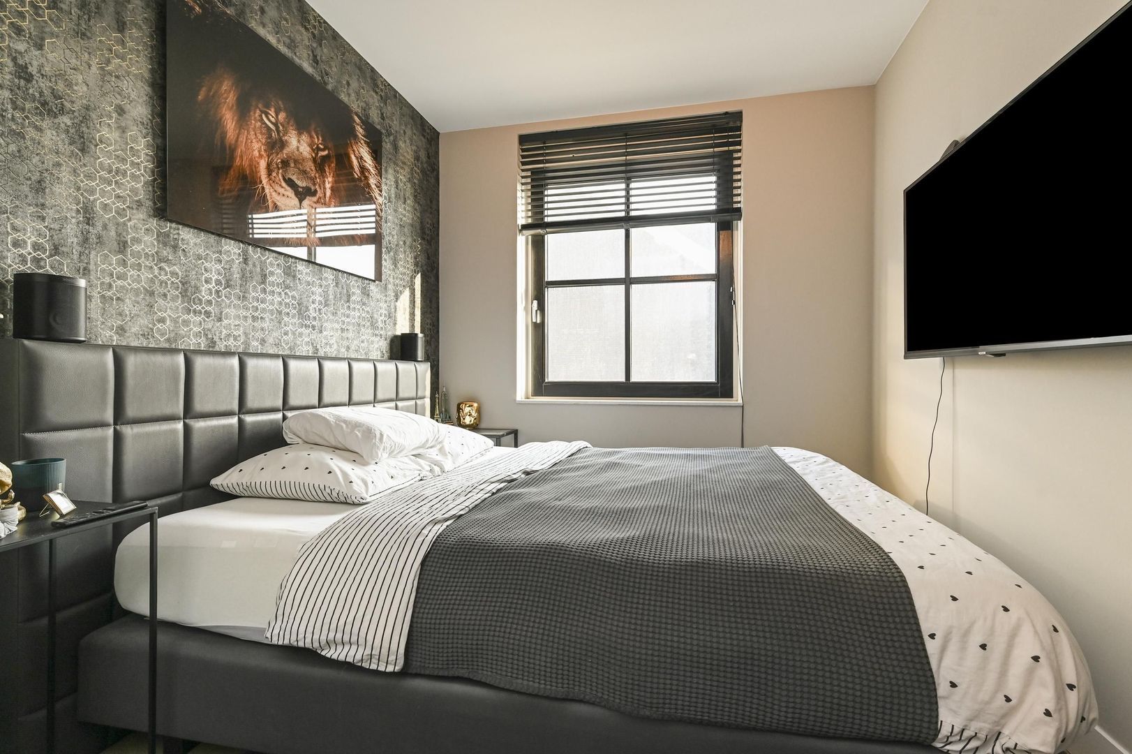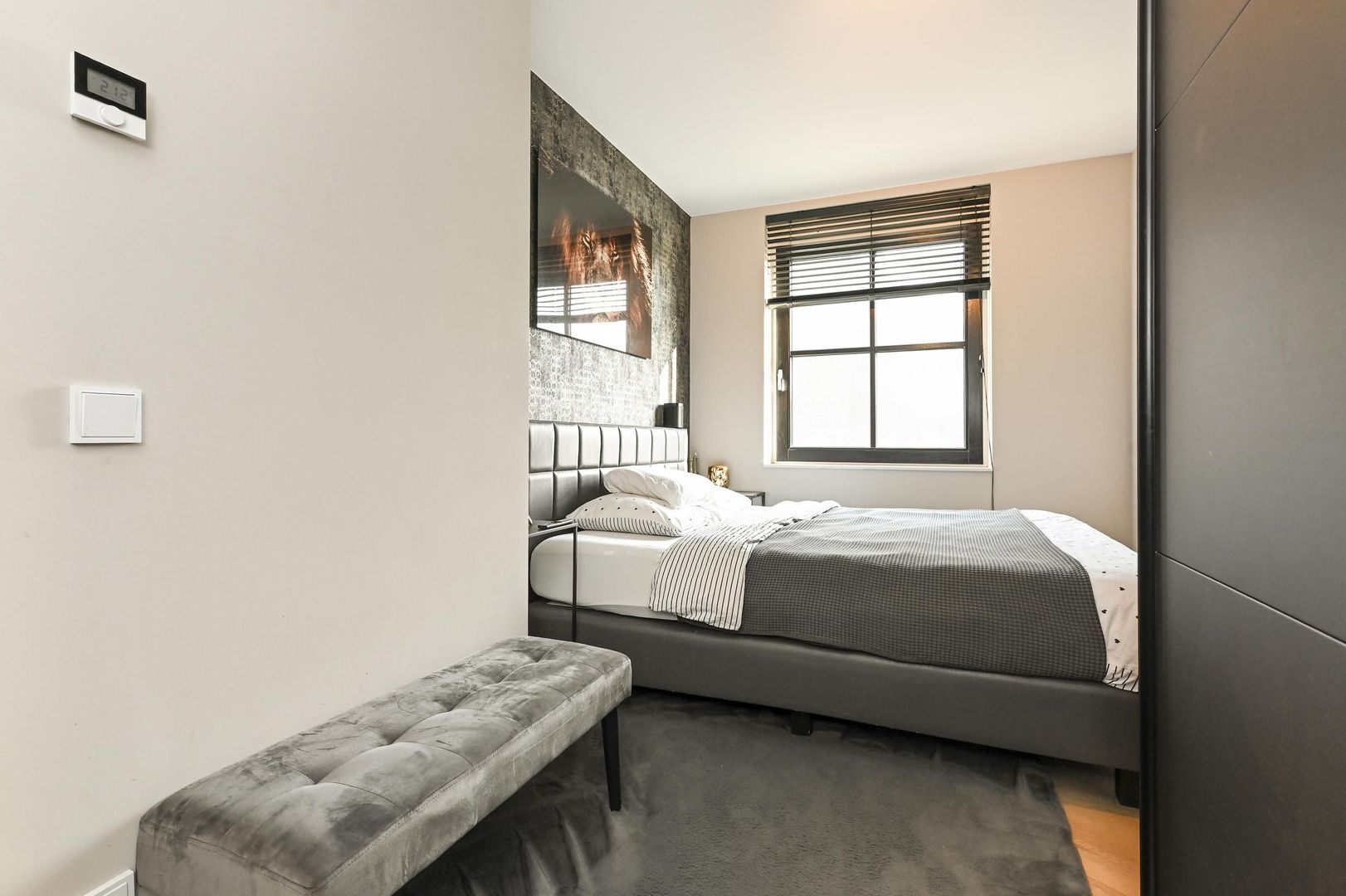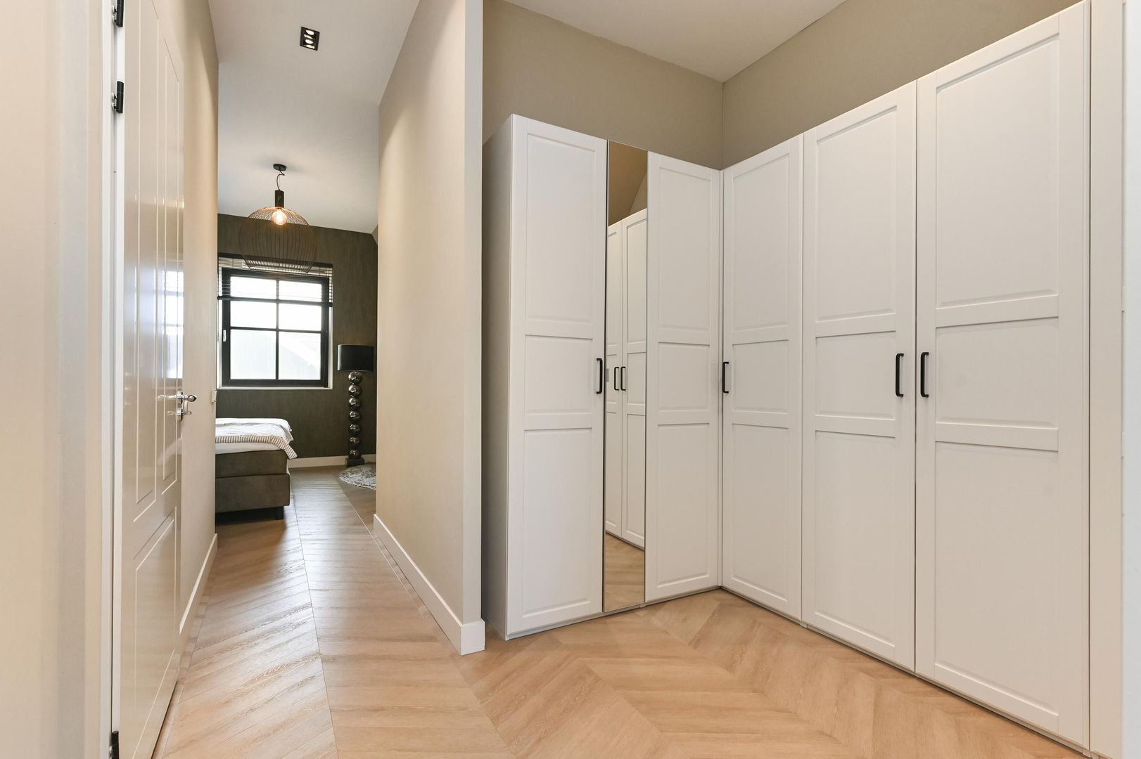 De sfeervolle hoofdslaapkamer heeft een royale inloopkast, ideaal voor extra comfort en bergruimte.
