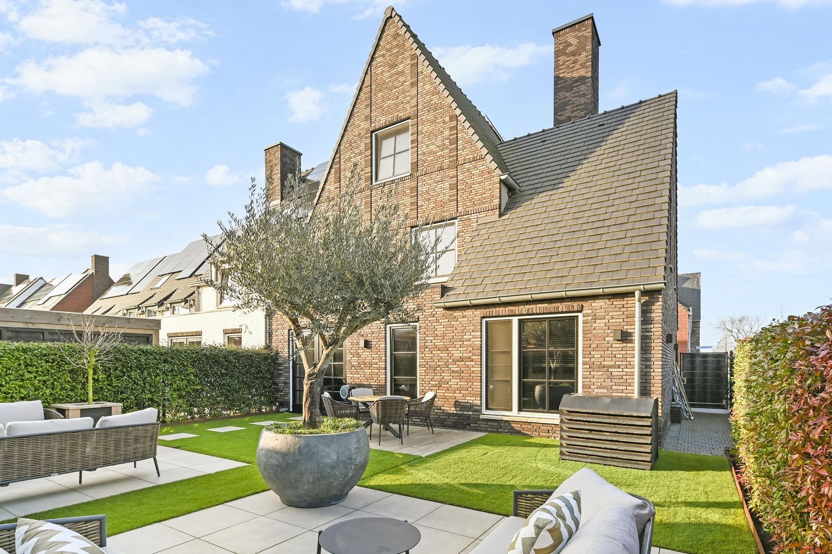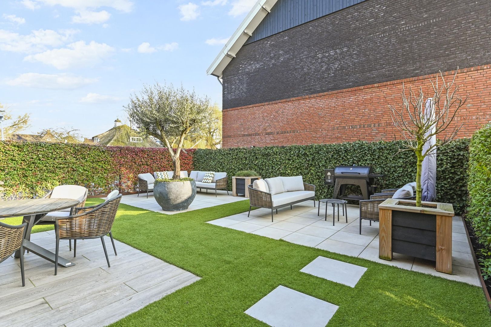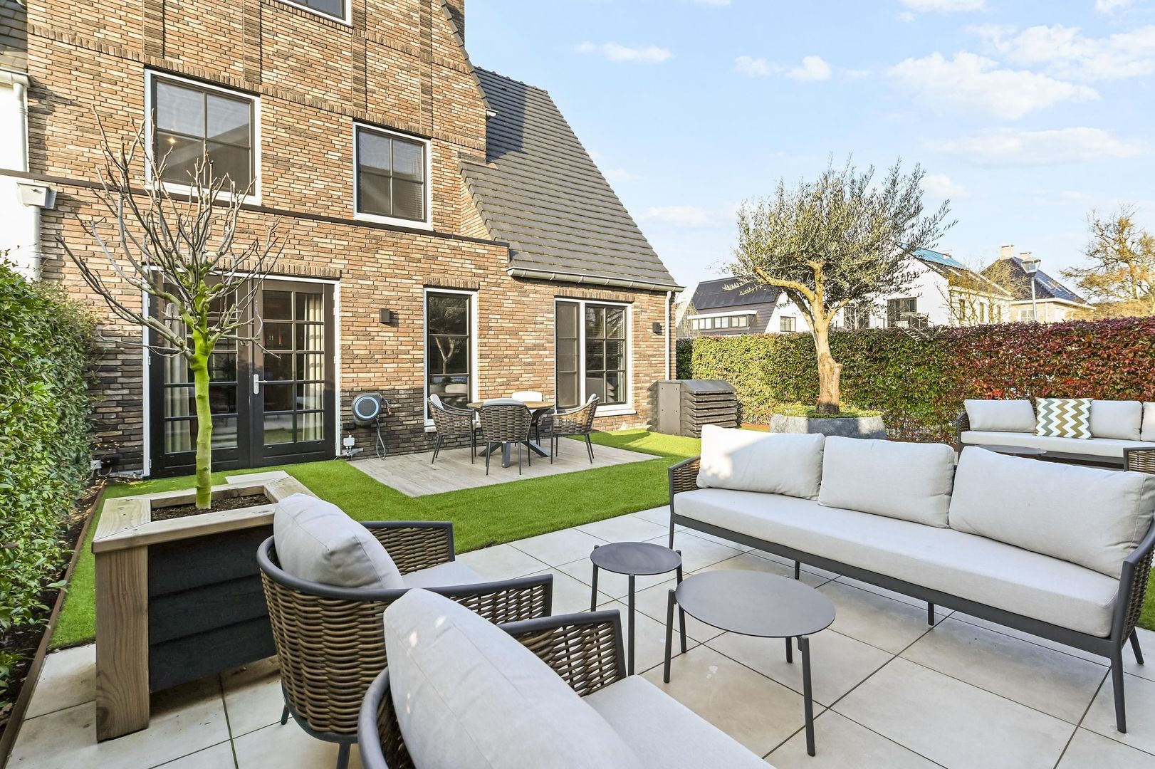 The rear garden includes multiple sun terraces, allowing you to enjoy the sun at any time of the day.